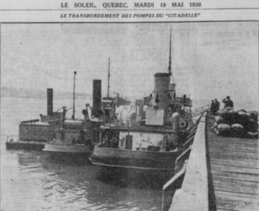 1932-1935 - Le ministère de la Marine et des Pêcheries nomme le capitaine Albini Chouinard au poste de commandant à bord du Citadelle, un nouveau remorqueur et bateau-pompe servant à combattre les incendies dans le port de Québec et sur le Saint-Laurent.